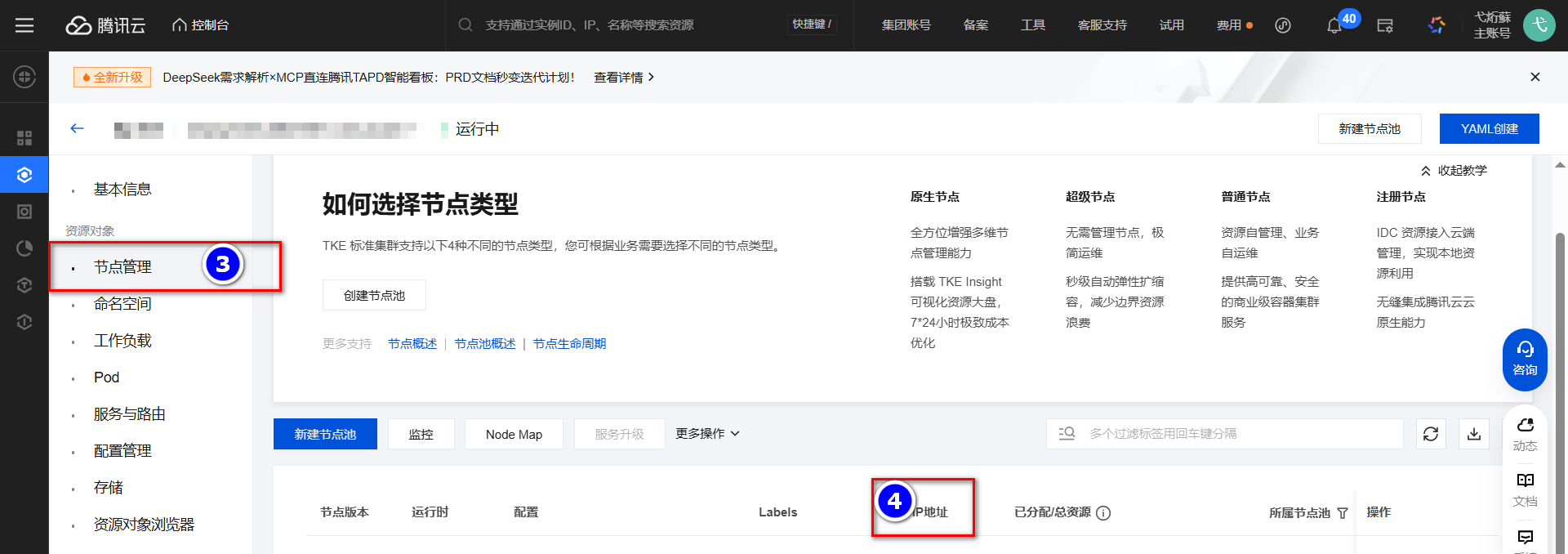 - 如果 IP 访问,需要进入“容器服务->节点管理”查看公网 IP, TEM 访问入口为:http://[IP]:32000