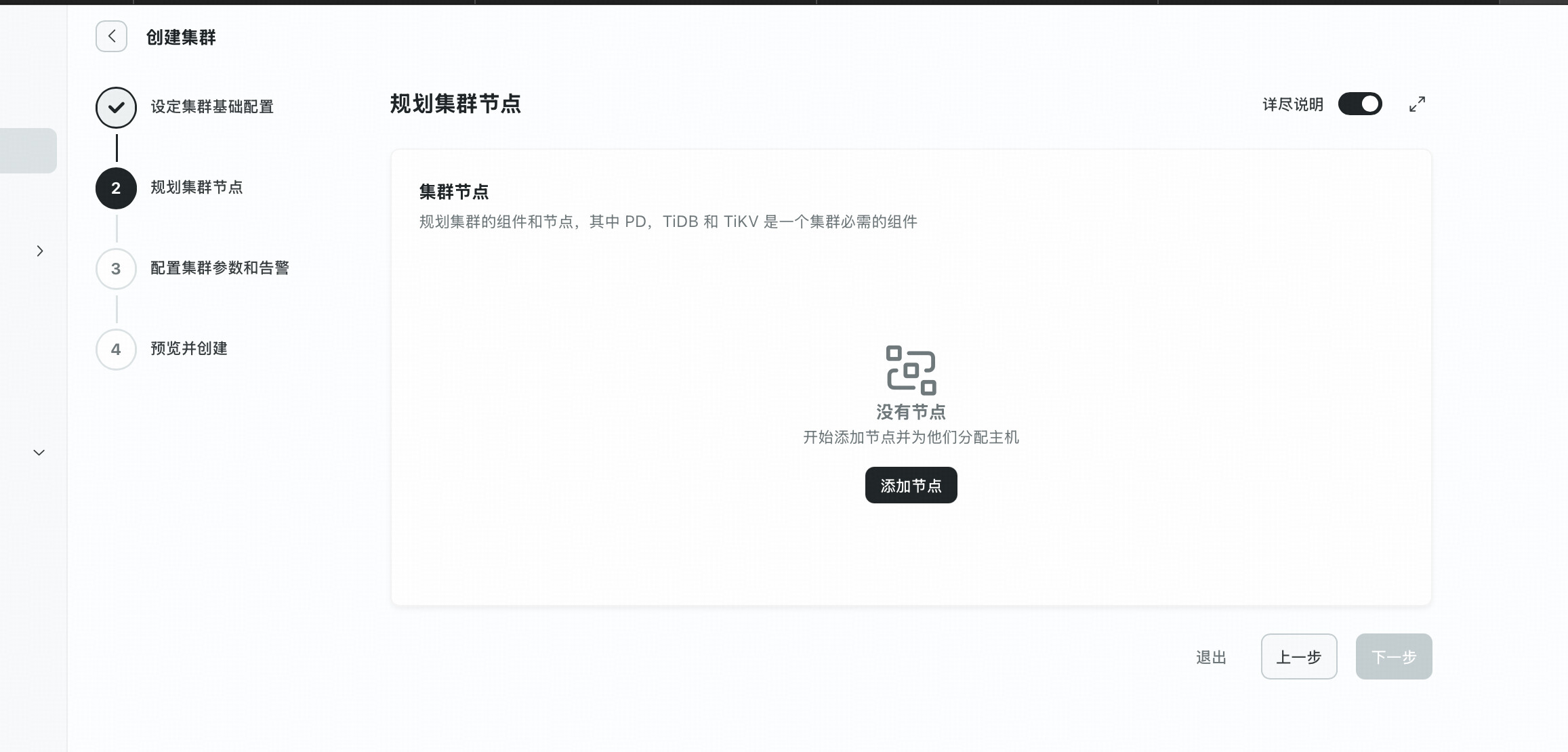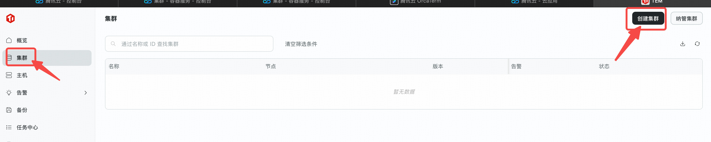 - 通过 TEM 新创建的 TiDB 集群 TiKV + TiDB + Tiflash 总节点数不能超过 10,否则有可能会导致节点添加不成功