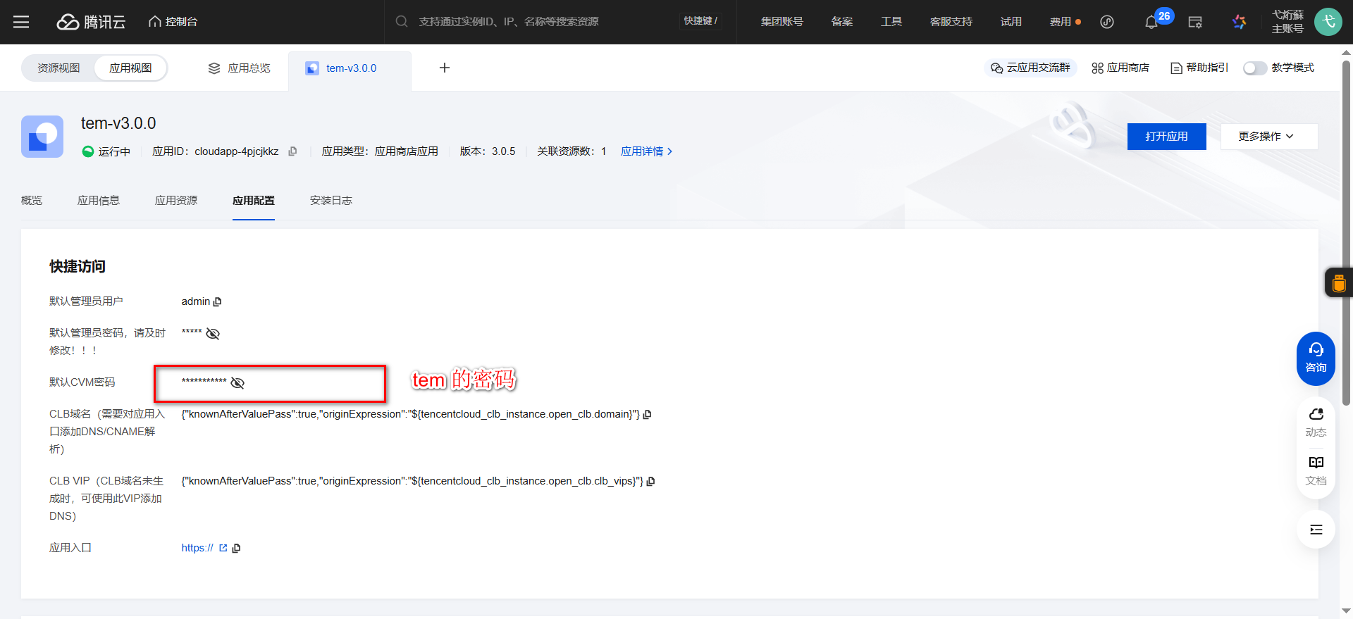 - 如果配置了域名访问:TEM 配置的入口地址,CLB 地址