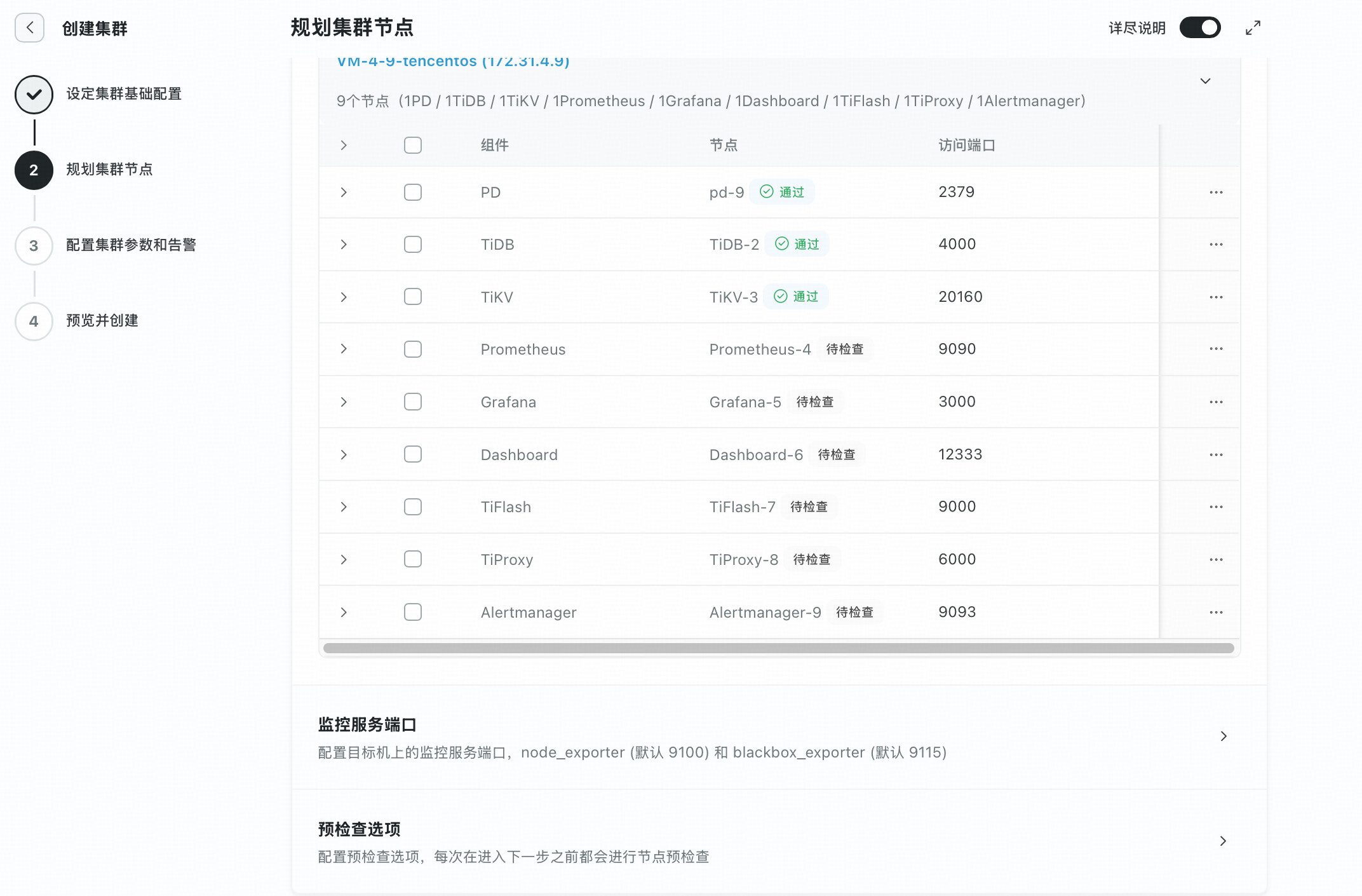 点击 “下一步” 会进行部署预检查,如遇端口冲突等问题可以手动修改端口