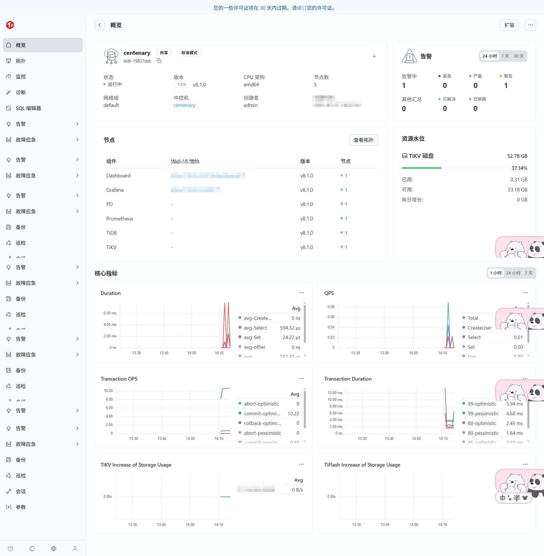 所以我这里就改成就只装 1 pd + 1 TiDB + 1 TiKV 每个节点都是 2C4G,图是官方的,因为主播想试一下最丐能去到什么样跑欠费了,只能后续再说了,没截图