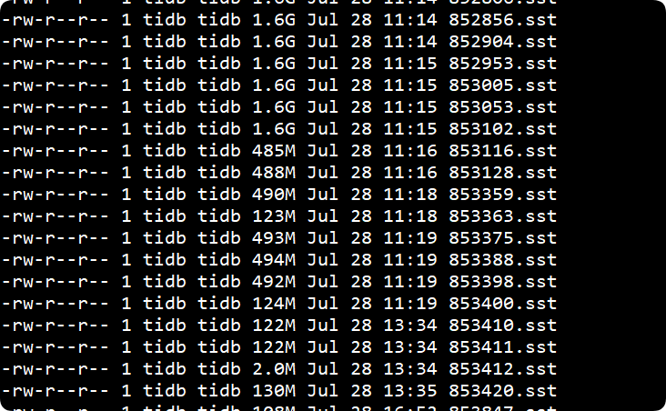 另到 /data/tikv-20160目录,看下文件有哪些。