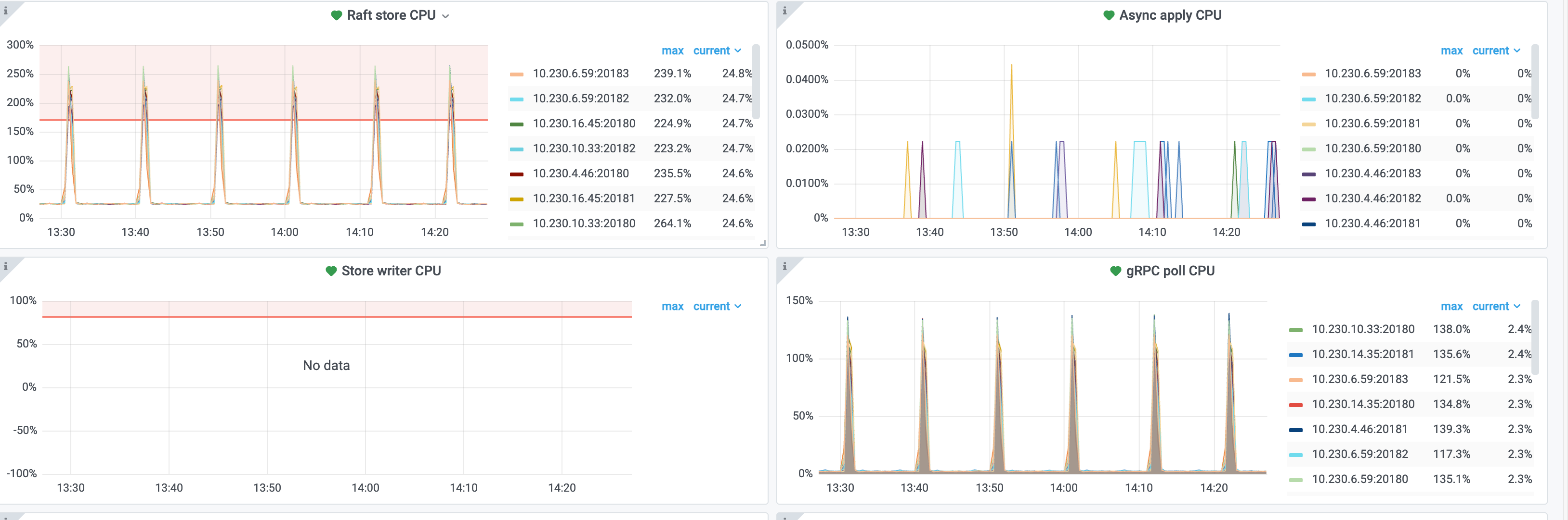 每十分钟 tikv 的机器 CPU 就飙升一次,同时主机负载也从 5% 飙升到 40%