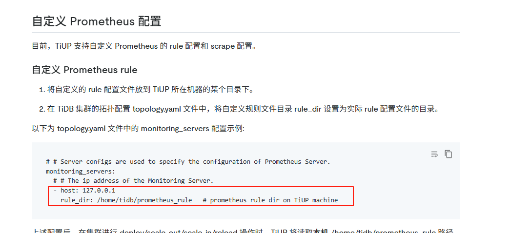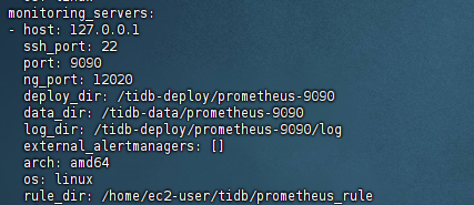 2 设置tiup当前机器的路径,rule_dir: /home/tidb/prometheus_rule ,例如就是帮助的例子,然后在这个目录下,vim 一个自己的tmp.rules.yml
