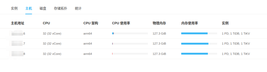 【资源配置】进入到 TiDB Dashboard -集群信息 (Cluster Info) -主机(Hosts) 截图此页面