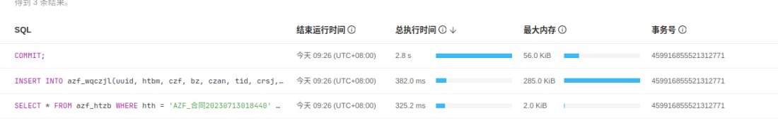 能找到事务459916855521312771 的所有SQL,那么问题就解决了