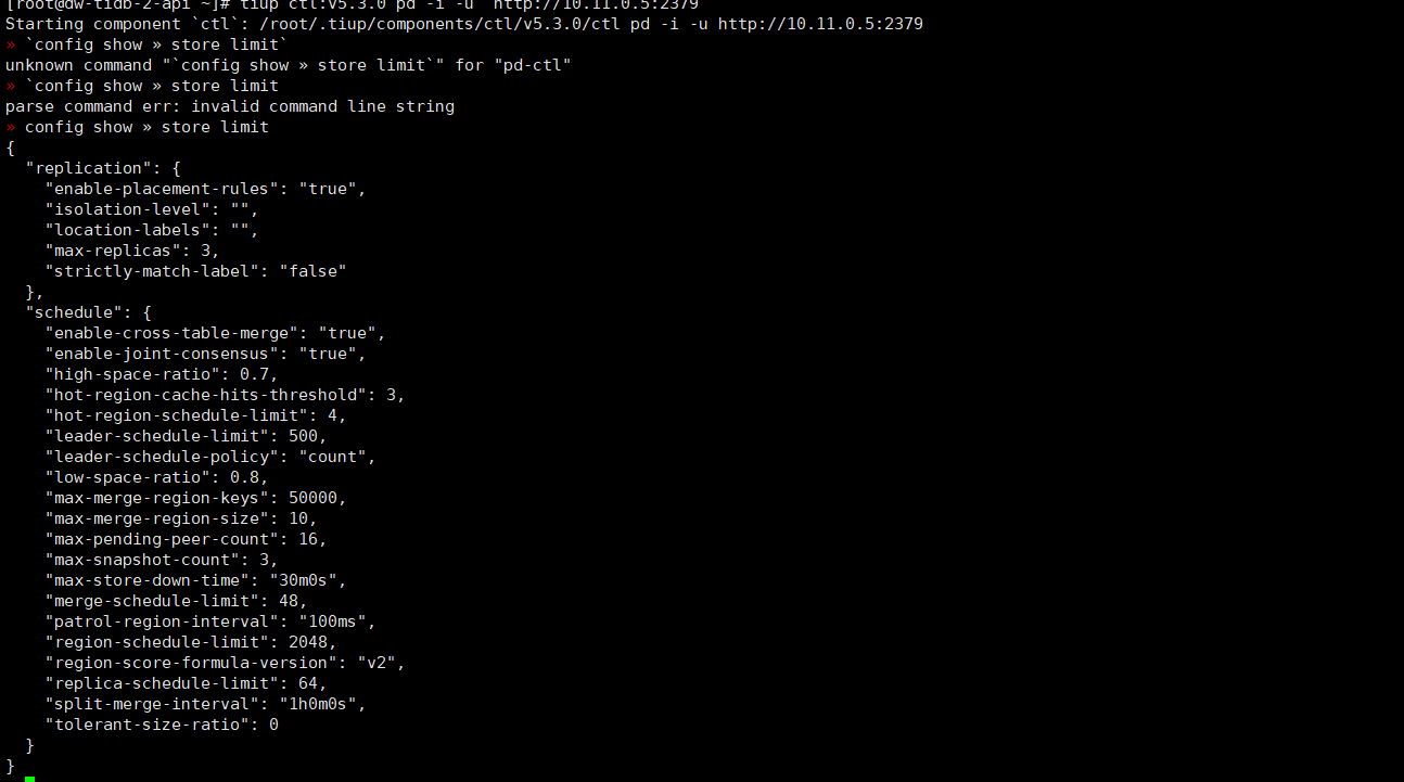 tiup ctl:v7.5.3 pd -u 172.31.7.144:2379 store limit