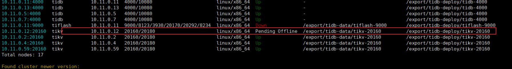 可以参考官网这里,缩容的过程。缩容完成后,要执行prune命令才会真正缩容下线这个节点,否则display的时候一直会看到他。
