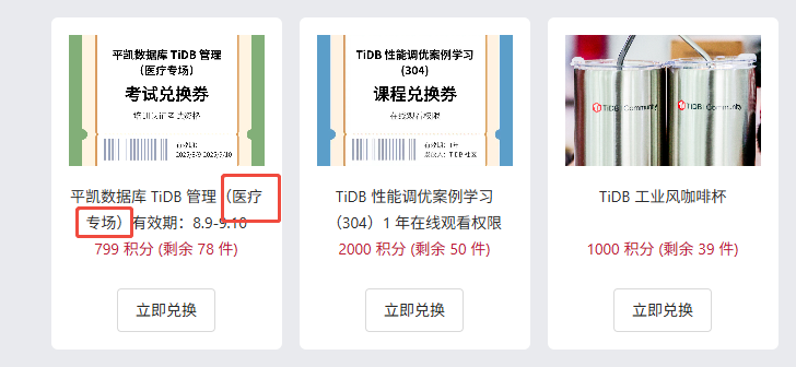 等官方上班看一下吧,TiDB主打一个宠粉,肯定不会浪费积分哒~