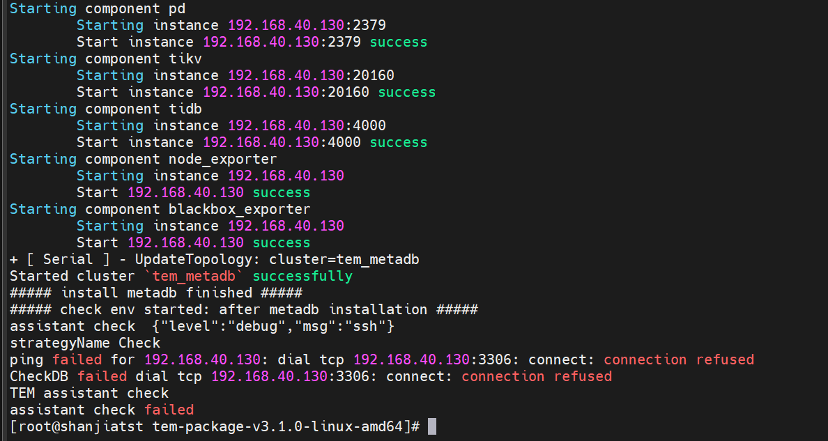 config.yaml中的db_addresses字段填写的套接字要加4000端口,否则默认3306
