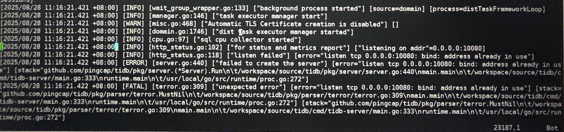 是不是用root用户启动了一次,又用tidb用户启动了一次,然后端口冲突了?