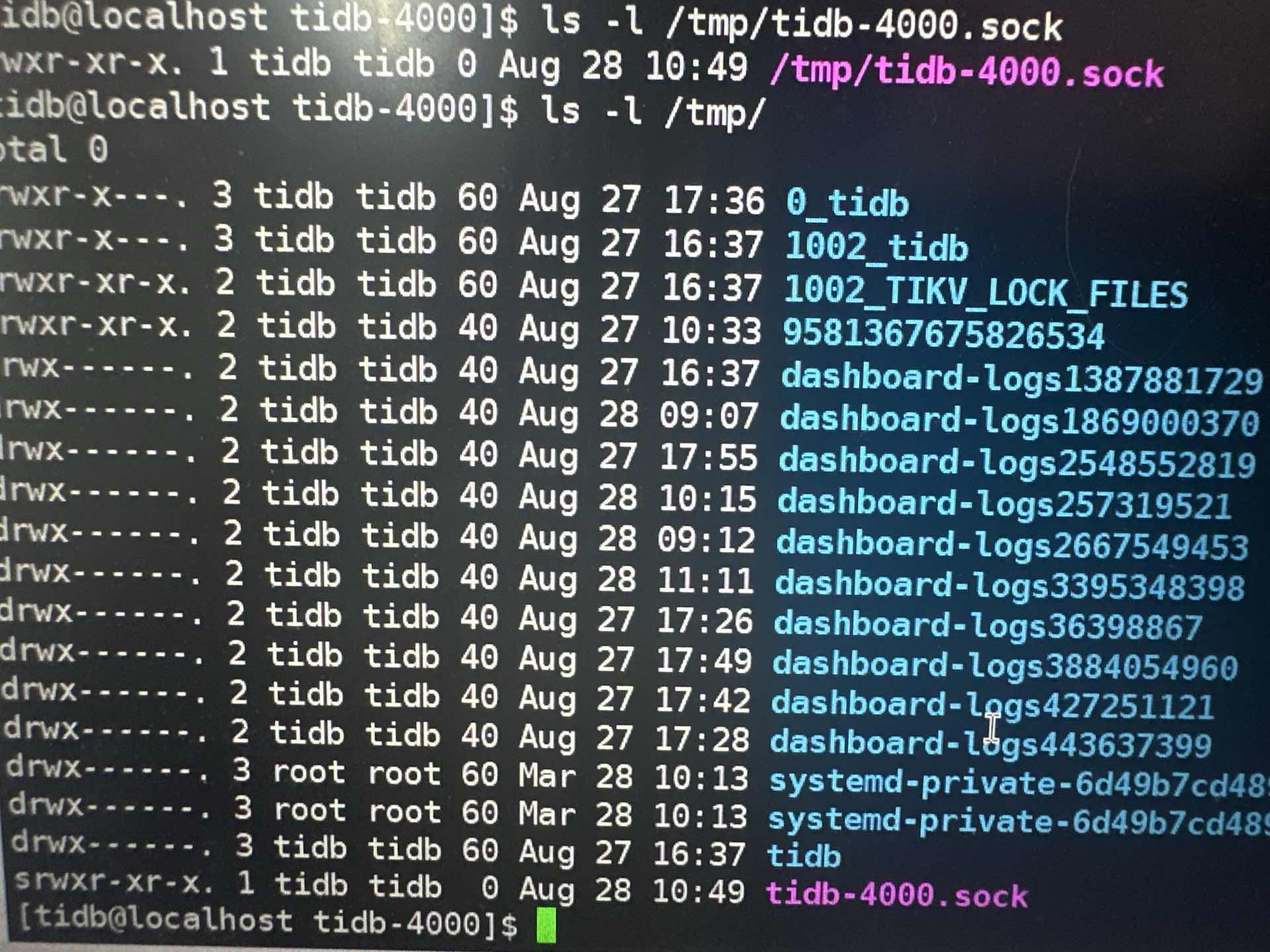 ls -l /tmp/tidb-4000.sock