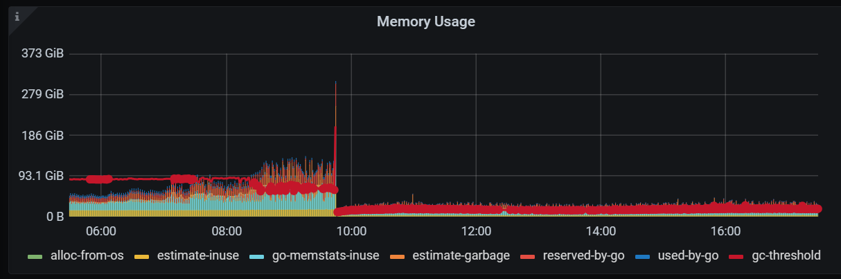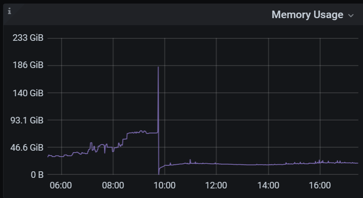 出现问题的时间段,查看了sql 占用内存最大为1G ,而且设置了mem-quota ,感觉不像是sql 的问题导致的