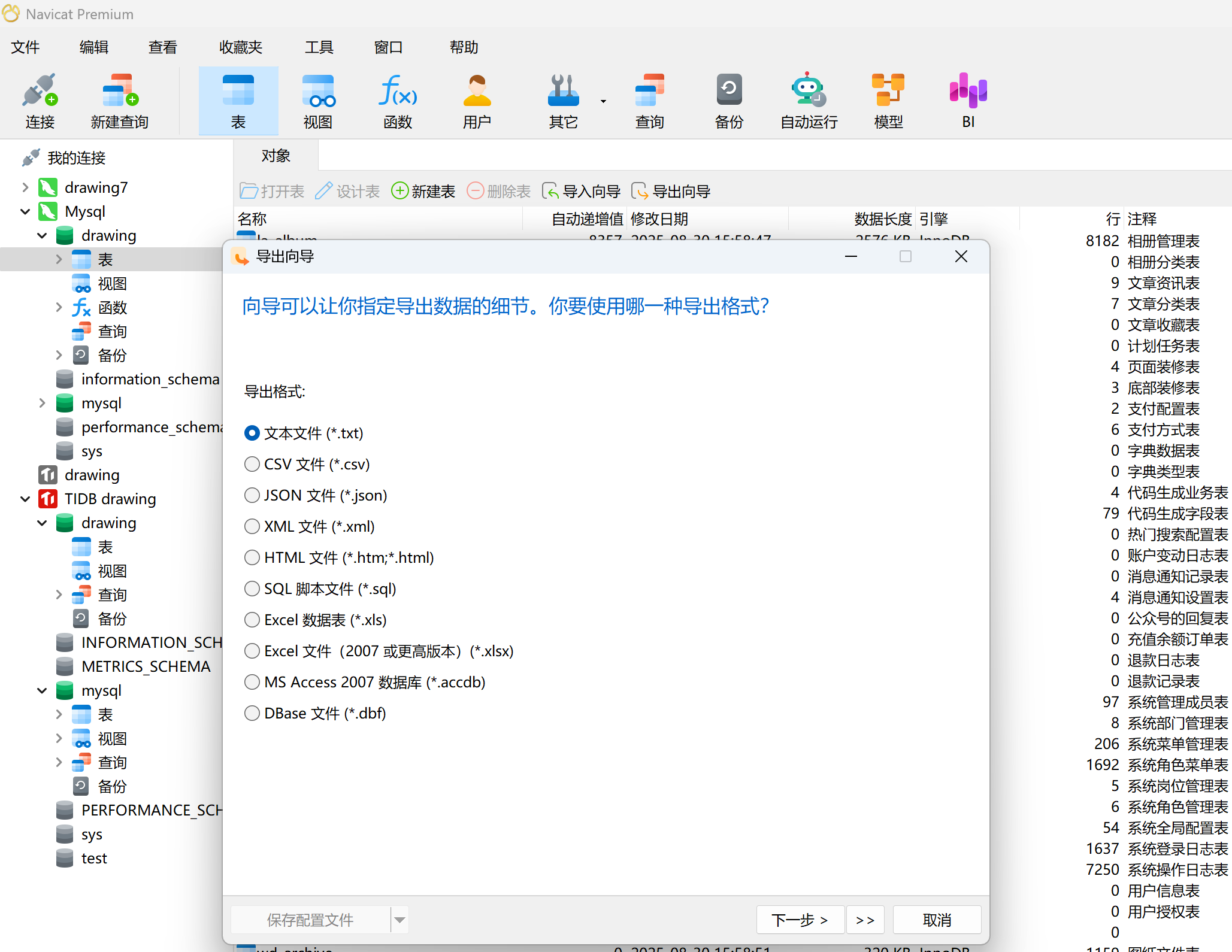 我经常用的是在库名上右击,然后转储sql文件,然后再导入到tidb对应的库里,你可以试试。如果库的数据量比较大,就不太建议这么干了。