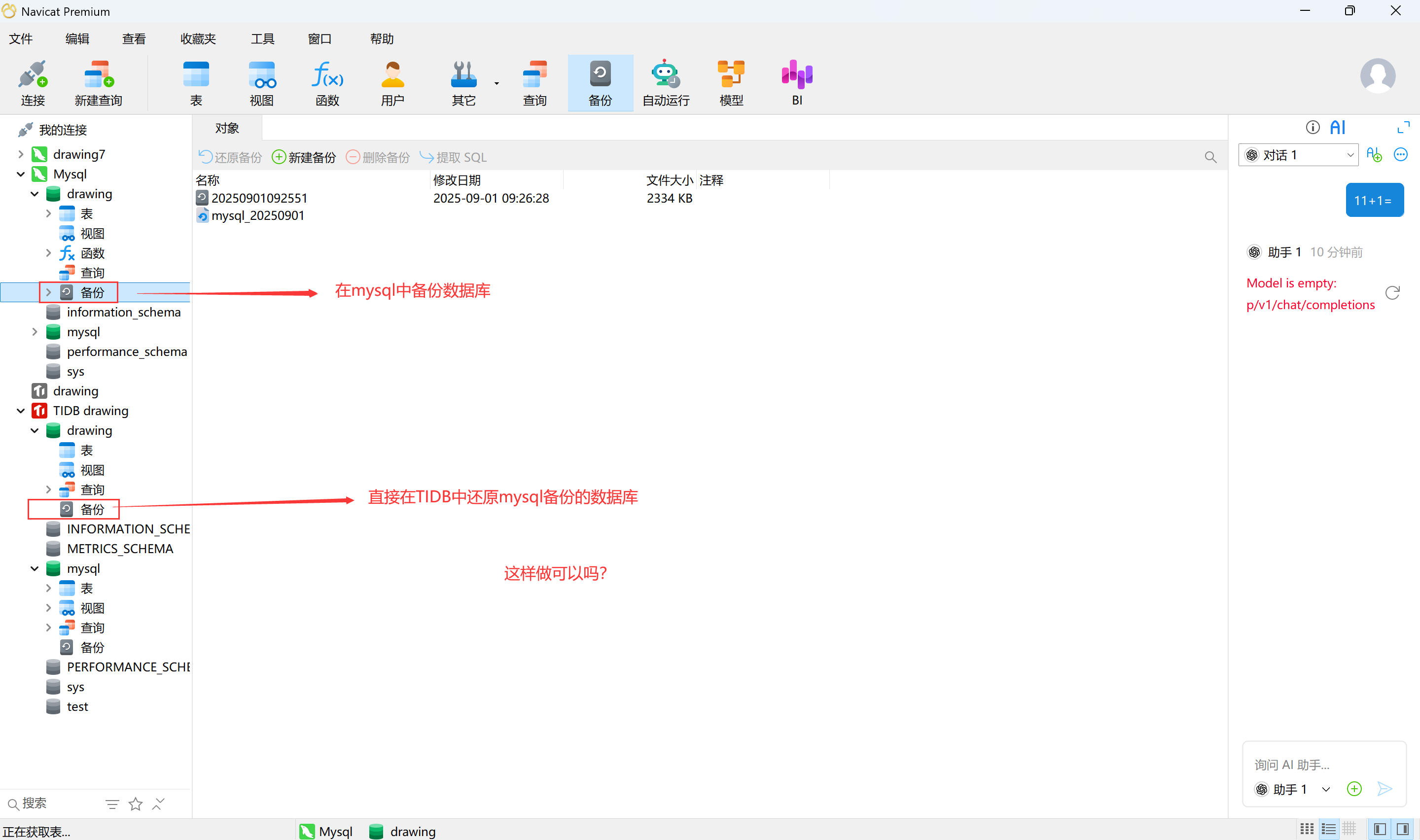 【遇到的问题:我用navicat premium工具,从mysql备份数据库;然后再用navicat premium工具,在TIDB数据库中用刚才mysql备份文件还原数据库,这样做可以吗,会不会丢失数据或者有其它问题,麻烦各位兄弟回复下,谢谢。