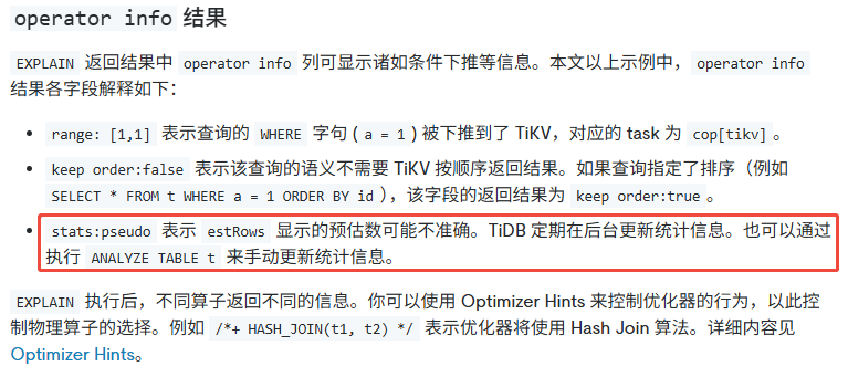 | id | estRows | estCost | actRows | task | access object | execution info | operator info | memory | disk |