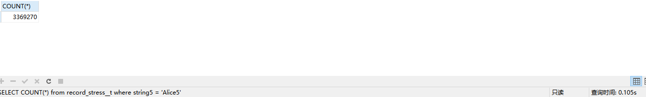SELECT COUNT() from record_stress__t where string5 = ‘Alice5’
