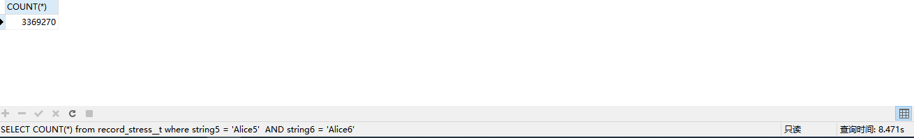 SELECT COUNT() from record_stress__t where string5 = ‘Alice5’ AND string6 = ‘Alice6’ 的执行计划