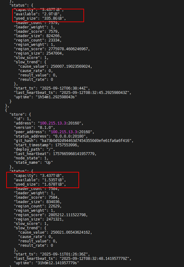 通过tikv ctl命令执行default cf的compact(tikv-ctl --host ip:port compact -d kv未指定开始位置和结束位置),发现新上线的节点需要额外指定–bottommost force才能将迁移过来的压缩数据解压缩重新写入;而下线节点过程中,运行了一段时间的tikv节点,直接执行compact就能把迁移过来的压缩数据解压缩写下去