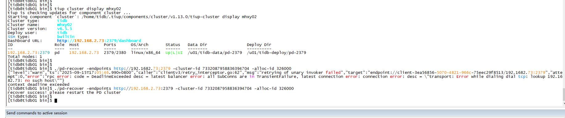 【问题复现路径】使用pd-recover 恢复pd,遇到Etcd cluster ID mismatch