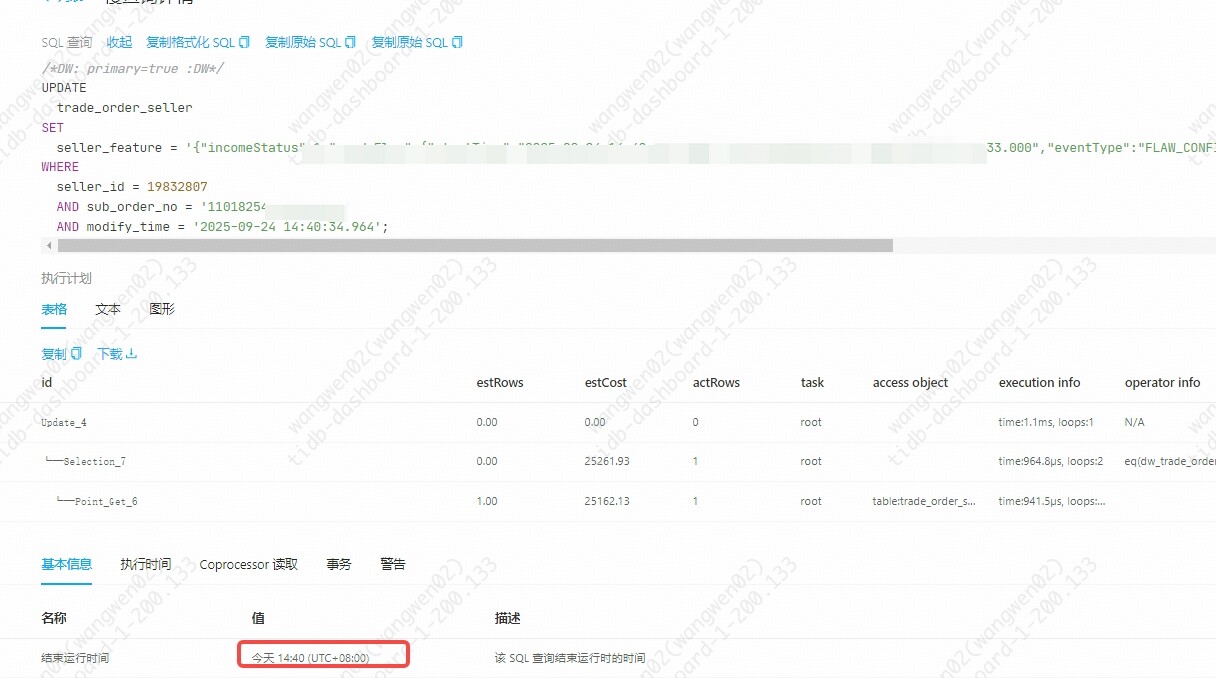 [2025/09/23 20:58:20.822 +08:00] [INFO] [coprocessor.go:1332] ["[TIME_COP_WAIT] resp_time:679.308093ms txnStartTS:461014905634947162 region_id:1834415 store_addr:10.221.202.122:20160 stats:Cop:{num_rpc:1, total_time:679.3ms} kv_process_ms:1 kv_wait_ms:39 kv_read_ms:0 processed_versions:2 total_versions:2 rocksdb_delete_skipped_count:0 rocksdb_key_skipped_count:0 rocksdb_cache_hit_count:20 rocksdb_read_count:0 rocksdb_read_byte:0"] [conn=2990378688] [session_alias=]