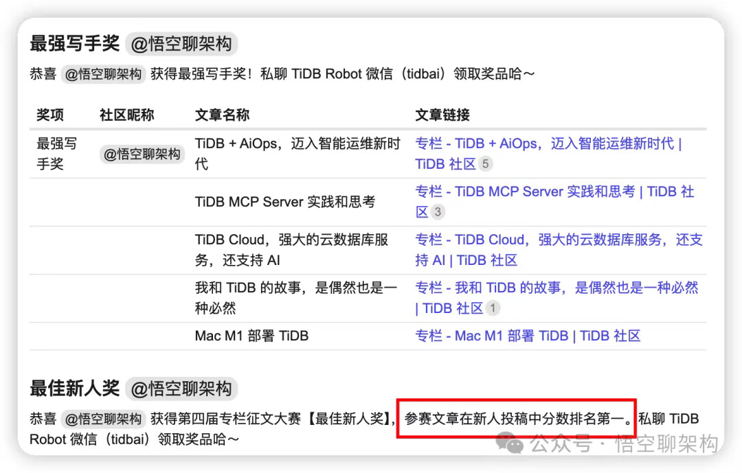 4)TiDB 社区第四届专栏征文大赛。