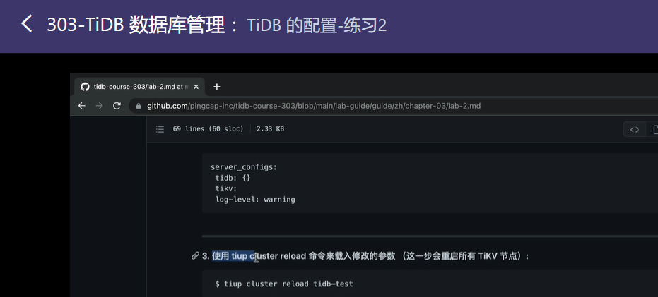学习303课程中,使用tiup cluster edit-config tc修改参数报错: