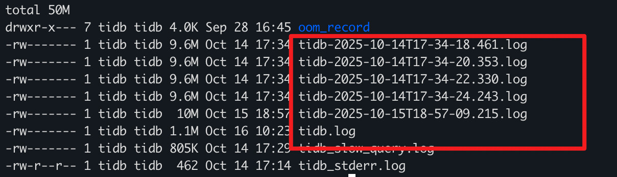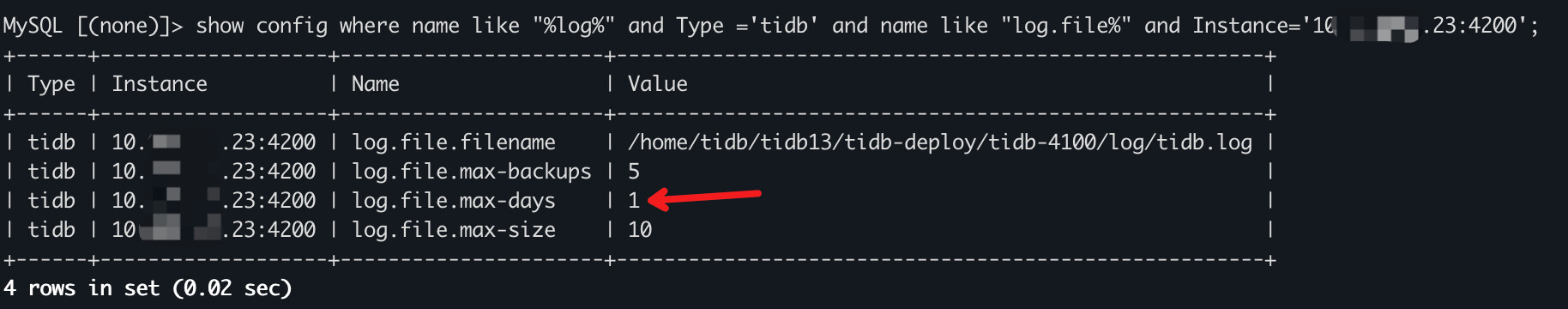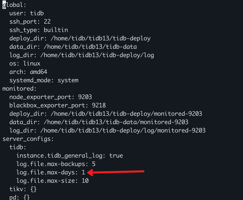 但是看起来只有log.file.max-backups和log.file.max-size生效了,log.file.max-days设置成1看起来并没有生效。