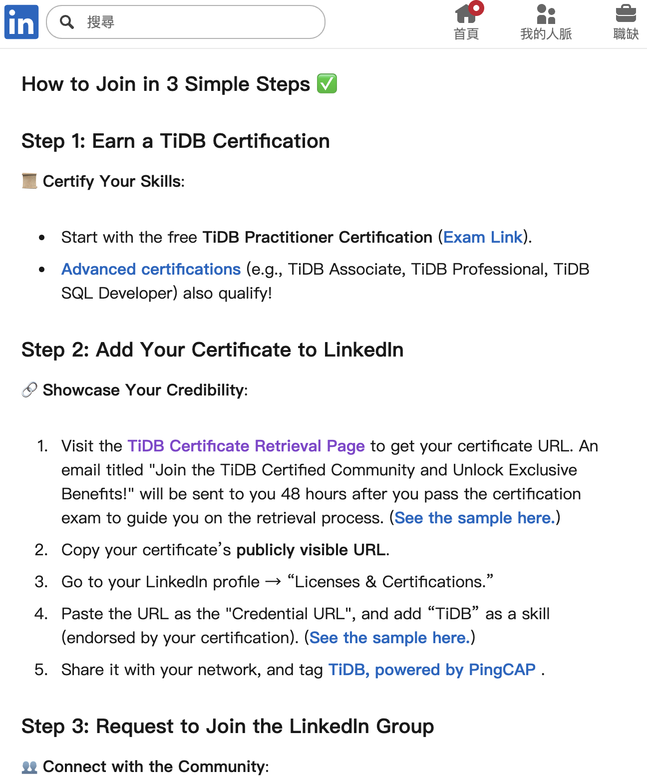 所以 Linkedin 会跟你说我们有自己的生态圈,加入的办法长这样