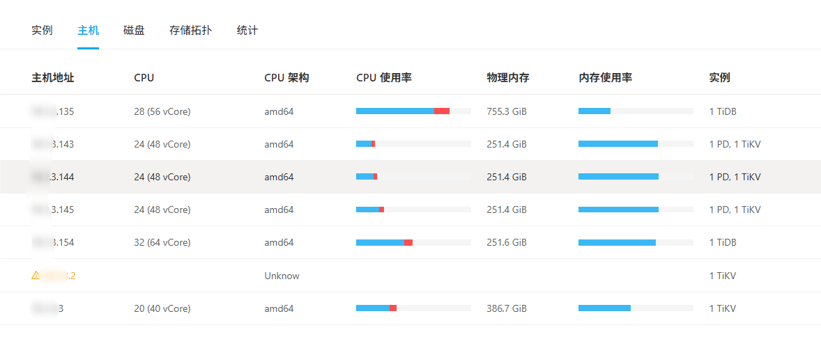 可能是该节点的某个组件(TiDB/TiKV/TiFlash/PD)实例状态异常(如未注册、心跳失联、资源超限) ,但未触发集群高可用阈值(比如 TiKV 副本数仍满足 3 副本、PD 集群多数派存活),所以整体业务不受影响