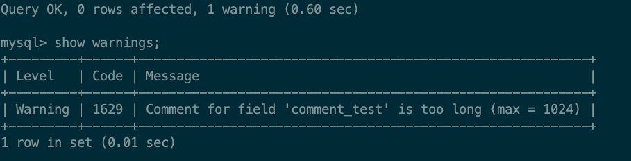 查看column表字段定义,发现COLUMN_COMMENT定义是 varchar(1024),理论是1024字符。