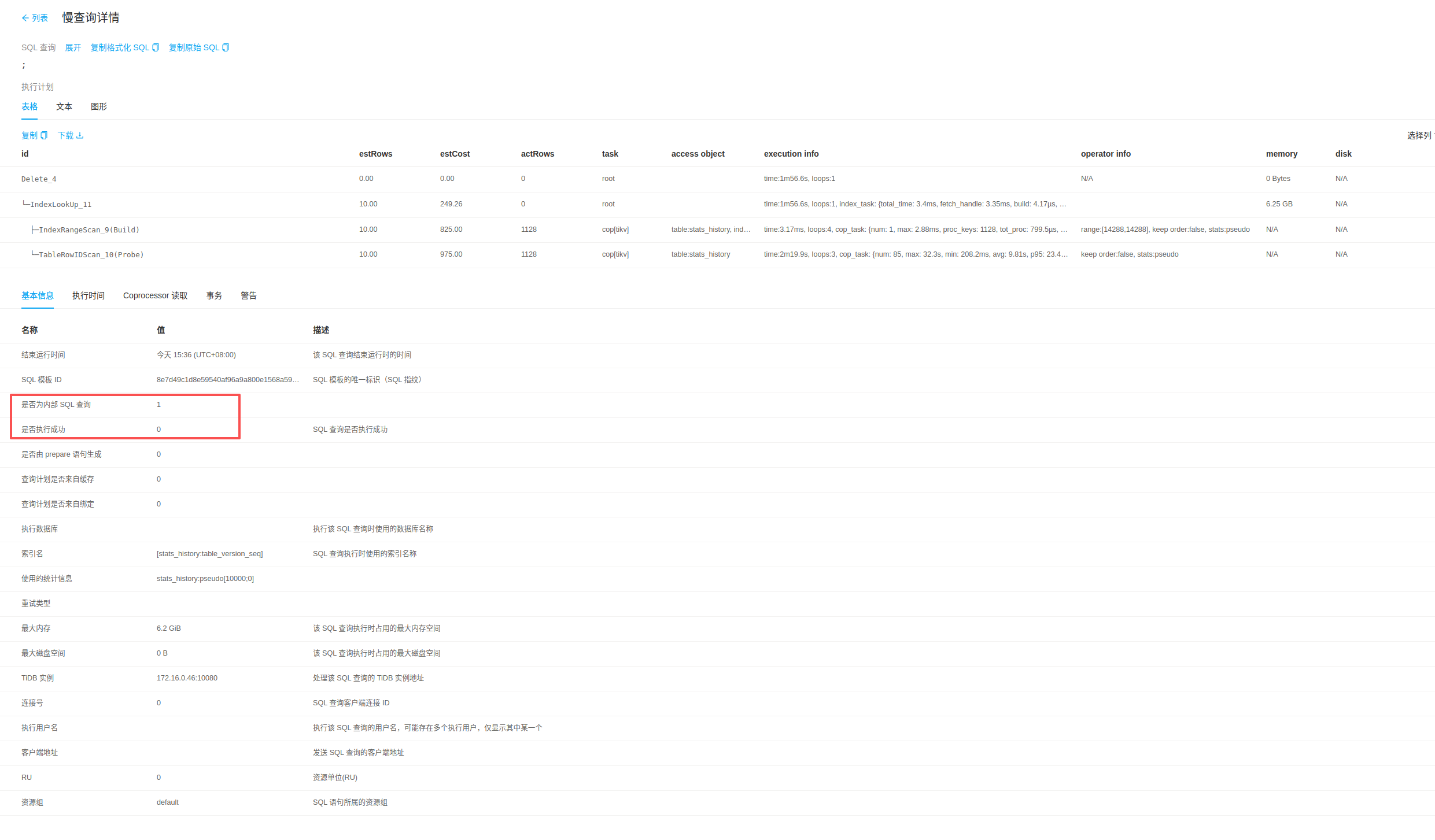 比较奇怪的一点是看不到 SQL 文本,不过通过执行计划可以看到访问的是 stats_histroy 表,这块有个历史统计信息功能有问题,高版本已经是默认关闭了,v8.1.0 默认是打开的,关闭就好了,这个参数关了就好了 tidb_enable_historical_stats