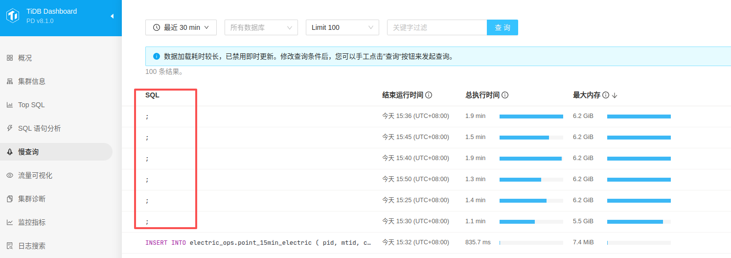 Dashboard 慢查询经常出现内部SQL查询占用大内存情况,