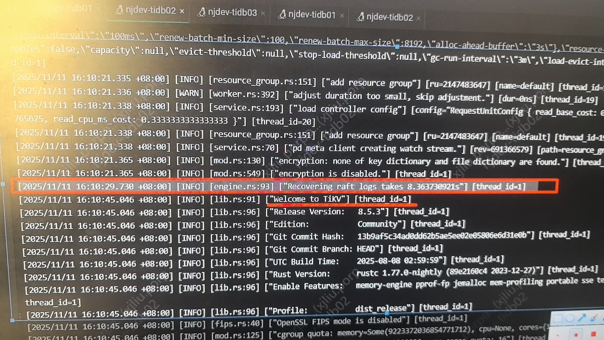 其他组件升级ok,开始升级tikv后,第一个节点就升级失败,导致tikv死循环不断重启,日志见附件,日志中未见明显的错误信息