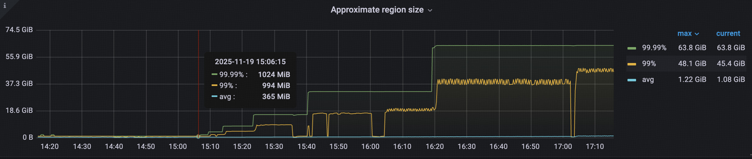 之前v6.5.8碰到这个问题:tikv时延上升,伴随region-size从平均100MB涨至30GB