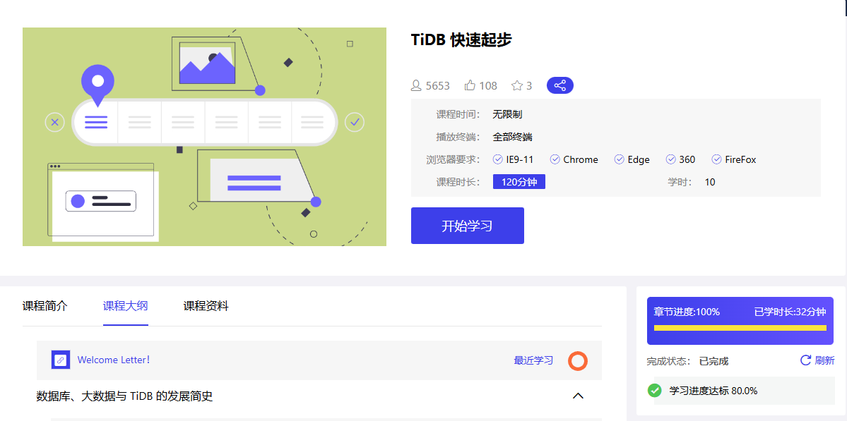 我之前用了1.5倍播放速度看的,看完后也是80%