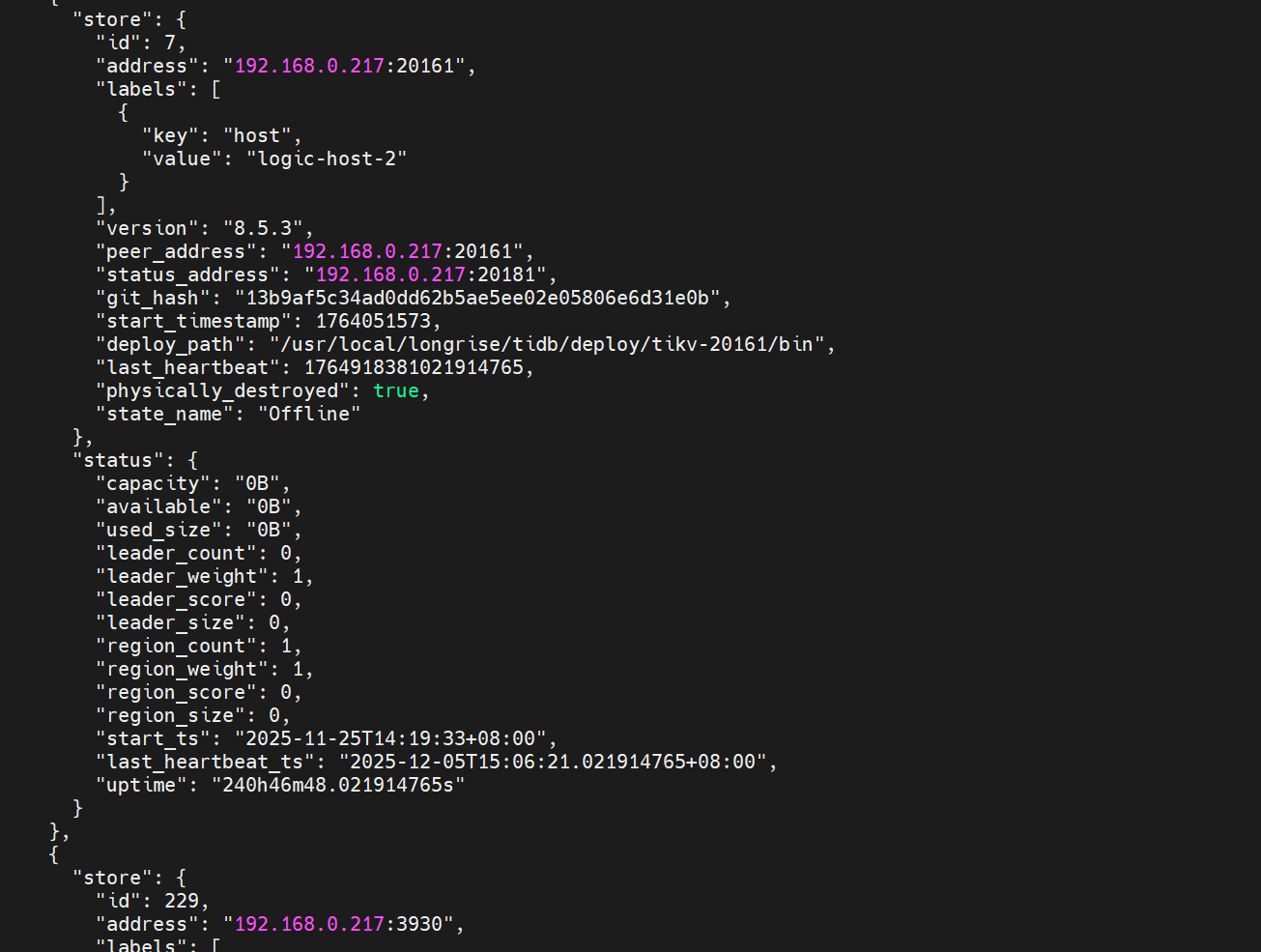 请问我现在是把tikv节点想剔除了,我其他的节点都是正常的,现在库也起来了,并且数据也都是正常的,我按照网上的说法把剔除20161,并且数据目录也清理了,但是display也是还是存在的,是哪里还有问题吗 并且tidb的日志还在报连接20161的报错。