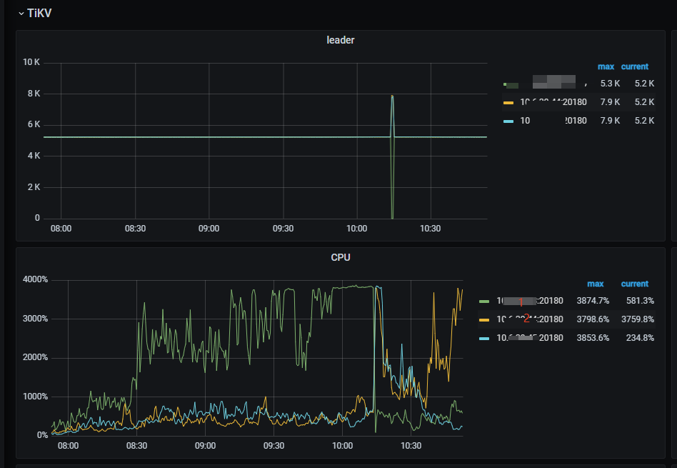 - 用 Dashboard 看该节点是否集中大量热点 Region/Leader;