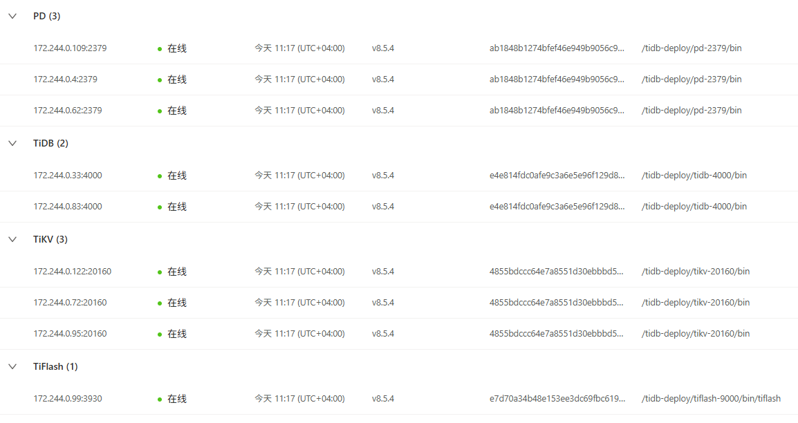 tidb 172.244.0.143 4000/10080 linux/x86_64 /tidb-deploy/tidb-4000