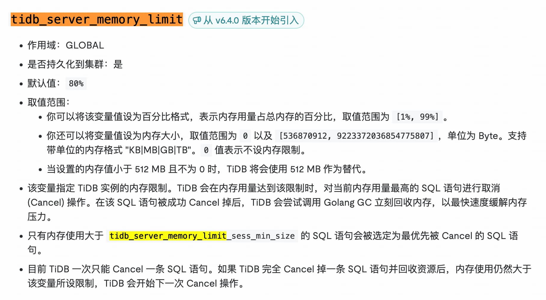 TIDB默认的单SQL内存是1G ,我已经改成了3G;