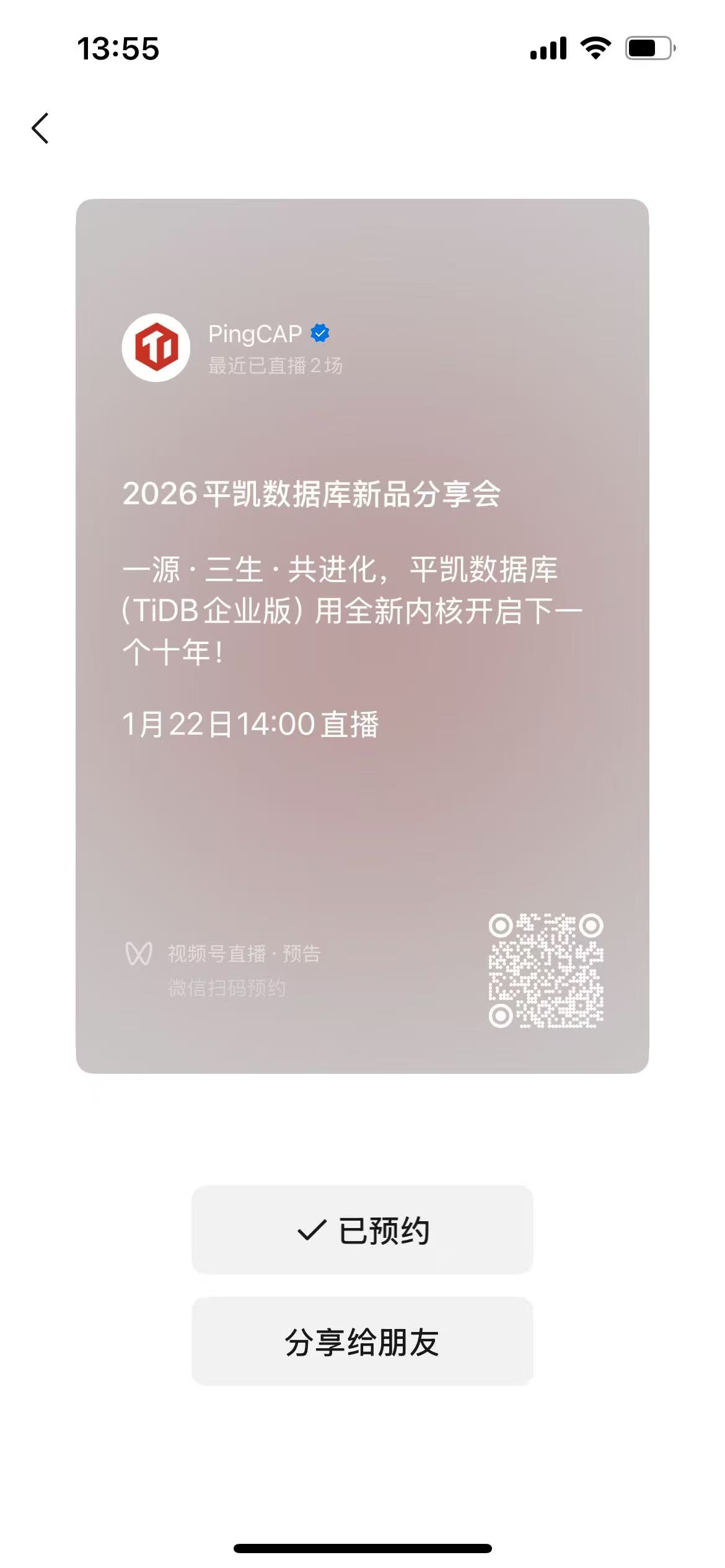 已预约+已转发。平凯数据库(TiDB 企业版)加油!