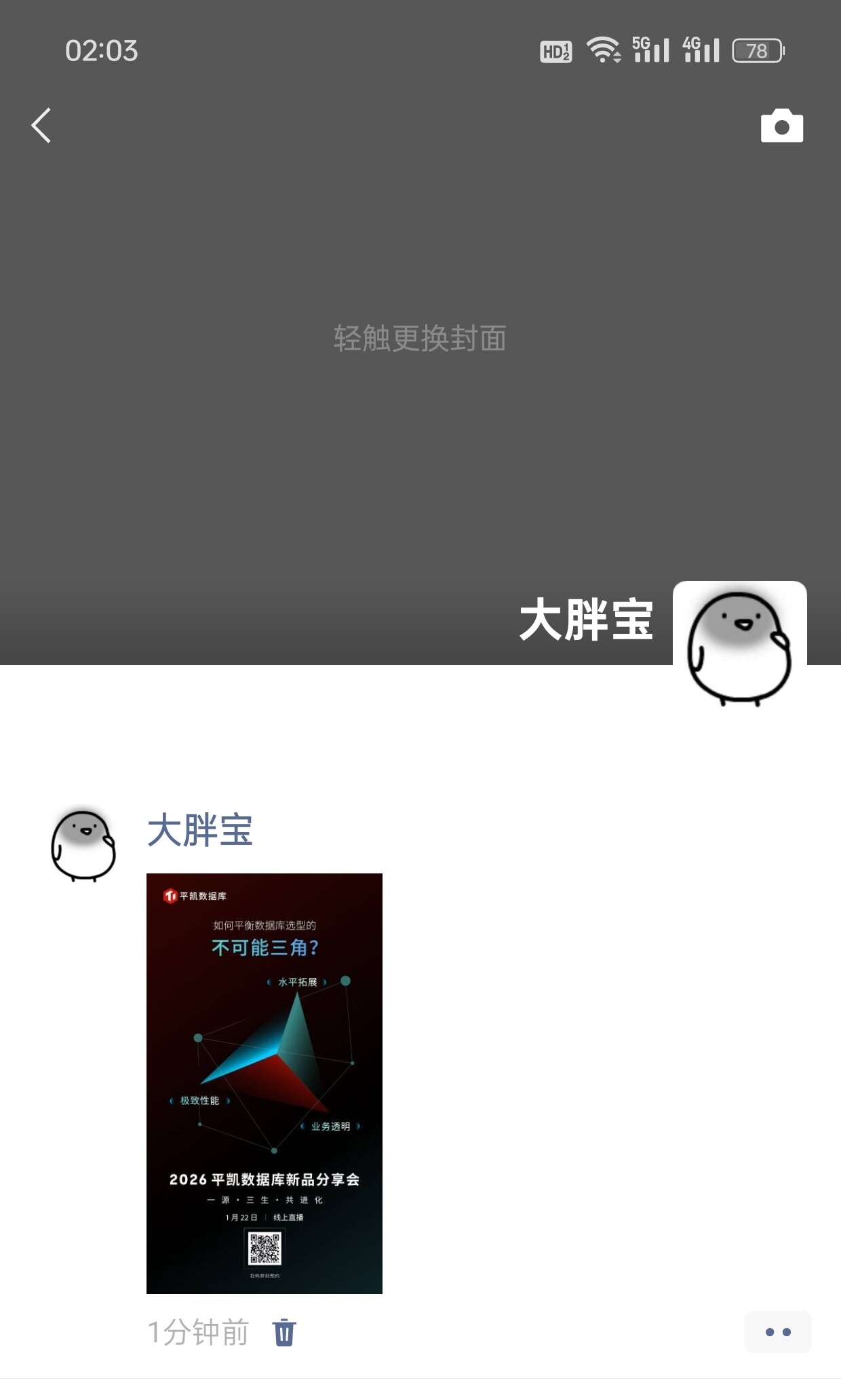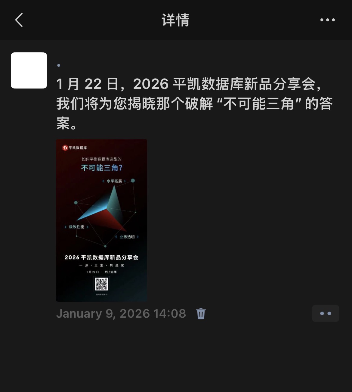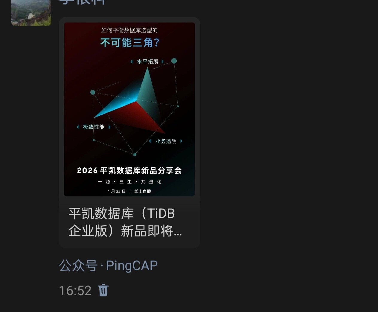已预约,非常期待直播,已转发朋友圈和公众号及 CSDN、墨天轮等其他社区 https://mp.weixin.qq.com/s/lYA29WJCAAN2EP8JoC4NPQ