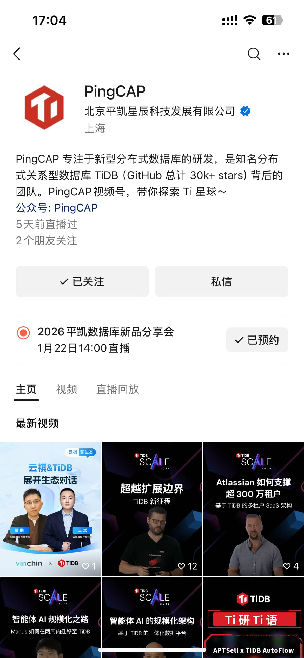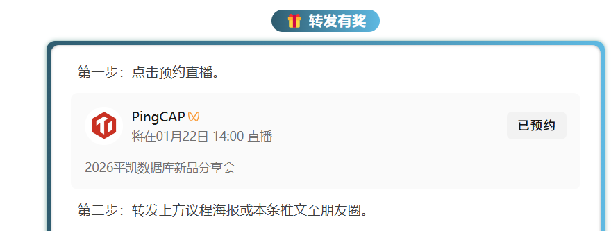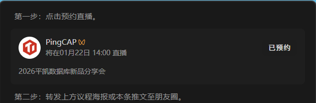 下周四,PingCAP 直播间不见不散!