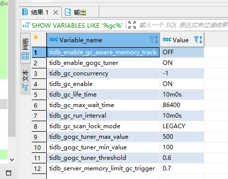 数据库表大表清理后,占用的空间不减少,通过SELECT * FROM mysql.tidb WHERE variable_name IN (‘tikv_gc_safe_point’, ‘tikv_gc_last_run_time’);查询结果正常,如下图: