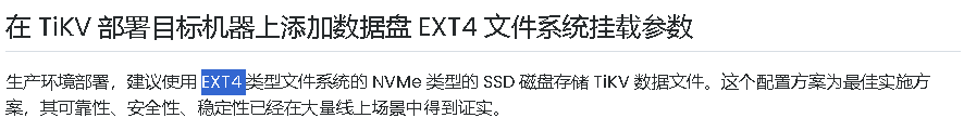 TiKV 官方明确推荐使用 EXT4 文件系统,并要求挂载时添加