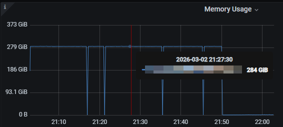 [memoryusagealarm.go:215] ["tidb-server has the risk of OOM because of memory usage exceeds alarm ratio. Running SQLs and heap profile will be recorded in record path"] ["is tidb_server_memory_limit set"=true] [tidb_server_memory_limit=215888851760] ["tidb-server memory usage"=172934062040] [memory-usage-alarm-ratio=0.7] ["record path"=/data/tidb_deploy/tidb-4000/log/oom_record]