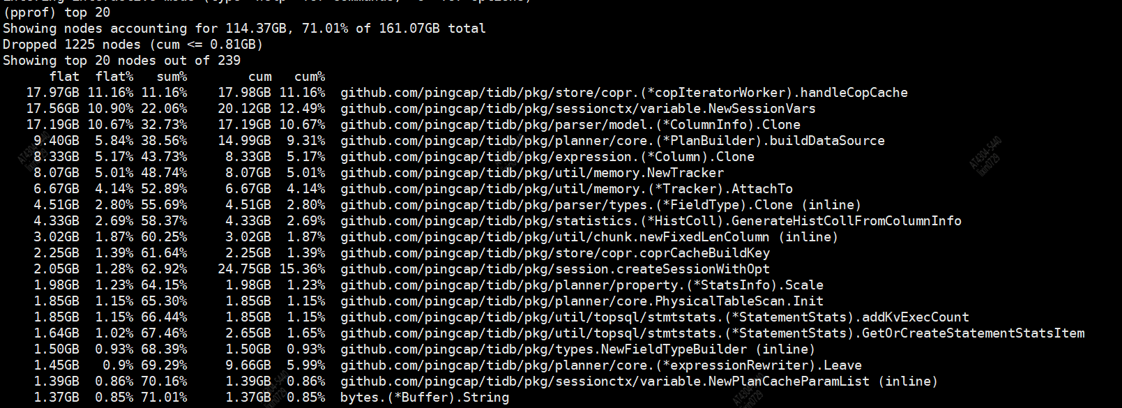 go tool pprof tidb_cpu.pprof # 进入交互模式后输入top,查看CPU占用最高的函数