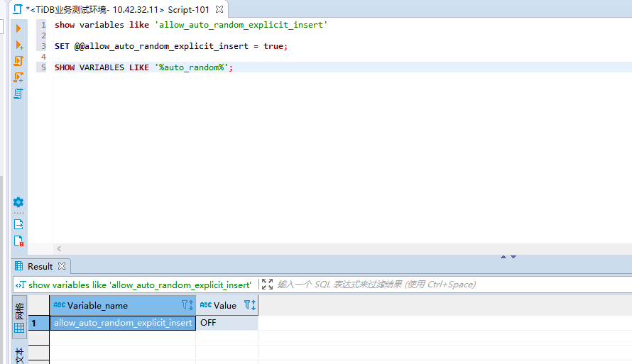 【问题复现路径】我在配置文件里设置了allow-auto-random-explicit-insert参数值为true,但在数据库中查询这个参数值始终为off,是哪里配置的不对吗?有没有大神指导下