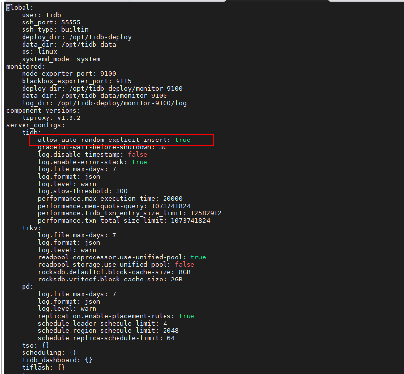 TiDB 配置文件修改后未触发配置重载,或配置作用域 / 生效逻辑理解偏差,导致 allow-auto-random-explicit-insert 仍显示为 off。