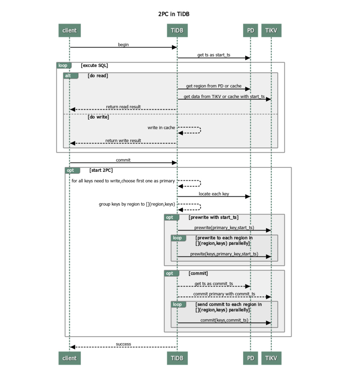 TiDB 基于 Percolator 模型(Google 提出的分布式事务模型)实现分布式事务,核心是通过「两阶段提交(2PC)+ MVCC + 乐观锁 / 悲观锁」结合,在分布式场景下保证 ACID 特性。